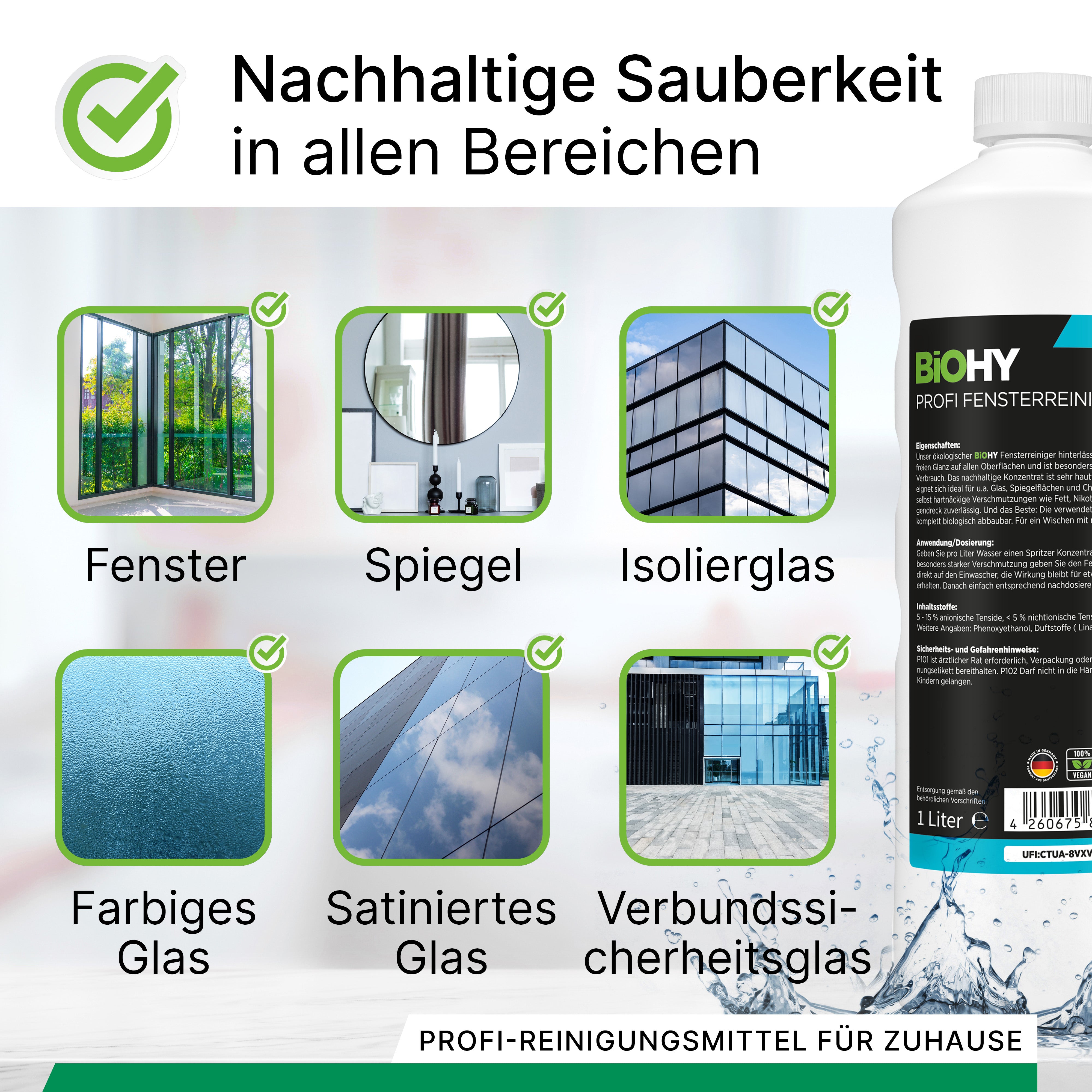 BiOHY professional window cleaner, glass cleaner, window cleaning agent, organic concentrate